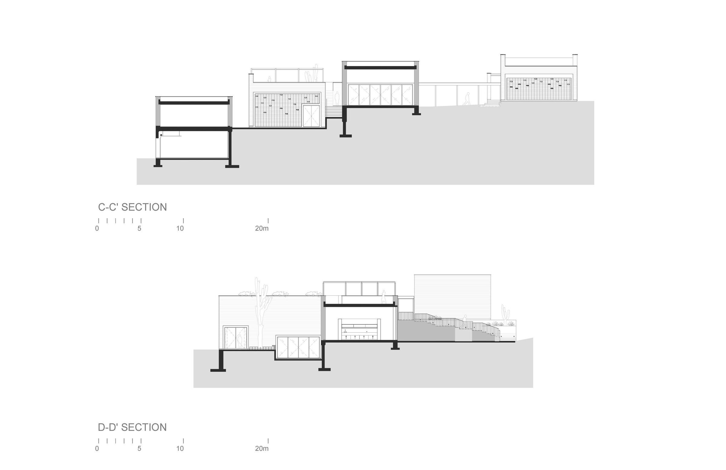 Because more joints typically lead to more leakage, RIMA designed trays at the bottom of the block walls to catch water that might drip down the exterior facade. To be safe, the architects also avoided designing carpentry and certain interior finishes against these walls, as they were more susceptible to humidity.
