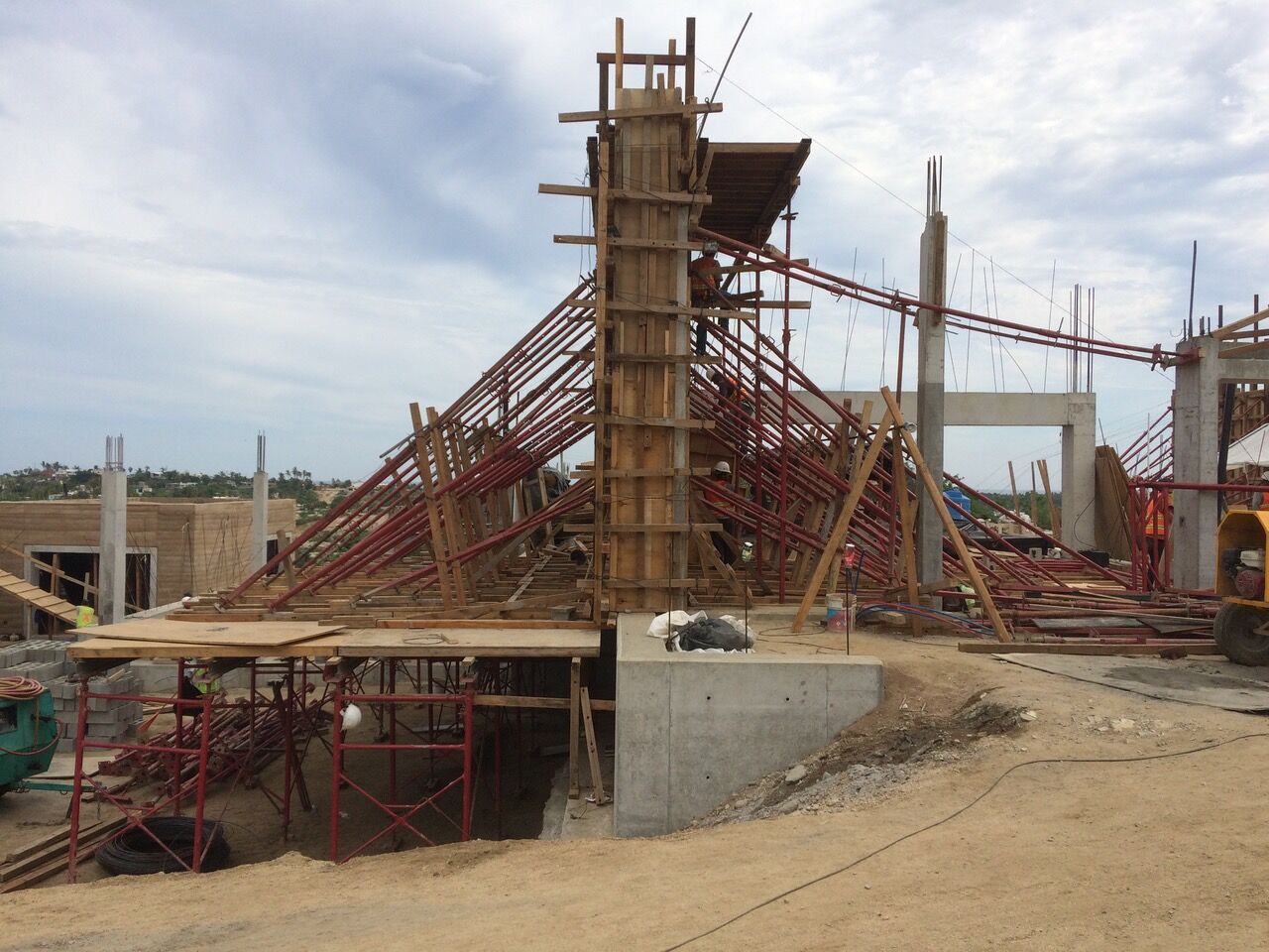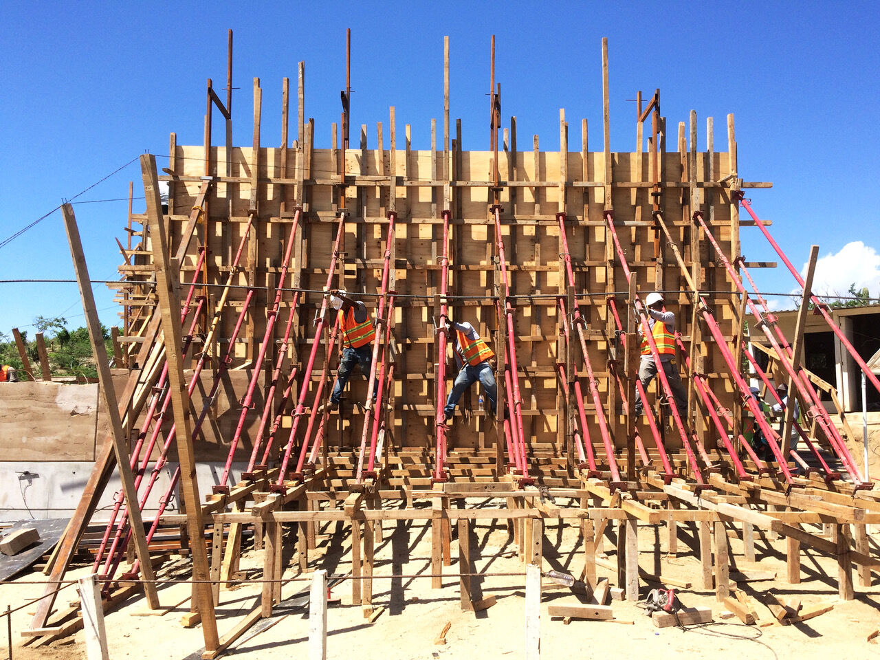 There were also limitations in wall lengths that needed to be considered. “We had some [issues] on the long walls, and so we rammed them in parts and designed a connection detail between them,” says Rivero. The architects drew out the joints of the plywood to control the links between one element of formwork with the next. “One of the things that we learned was that, because we were on a hillside, the formwork was more complicated than that used on a flat surface,” he says. The formwork was built over multiple stepped levels to support walls that ranged from 15 to 20 feet (4.5 to 6 meters) in height. “That was surprisingly much more complicated then anticipated,” he adds.