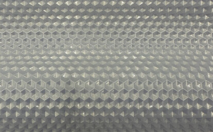 The Luxe finish is made up of many small prisms, which give the sheet a classic and elegant shape, but with a contemporary touch; it is also interesting to observe the behaviour of the sheet in the light, in fact, depending on the angle from which it is viewed, it is possible to see how the light is broken up by the small prisms into the seven basic colours of the rainbow.